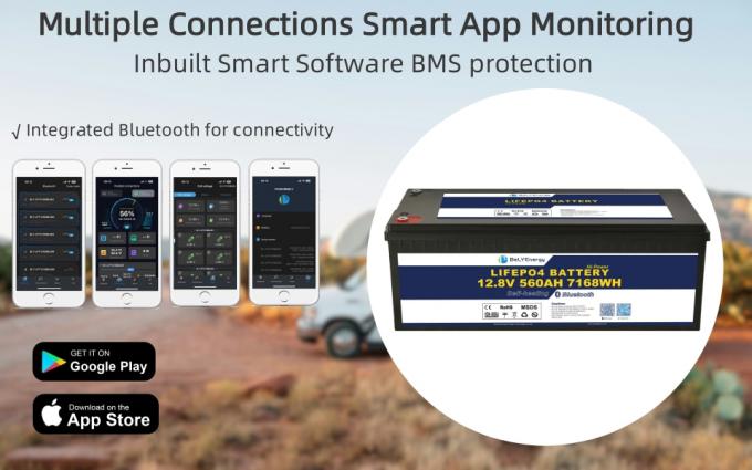 ABS Shell Long Lifespan 12,8V 560Ah LiFePO4 Lithiumbatterij met Bluetooth-connectiviteit